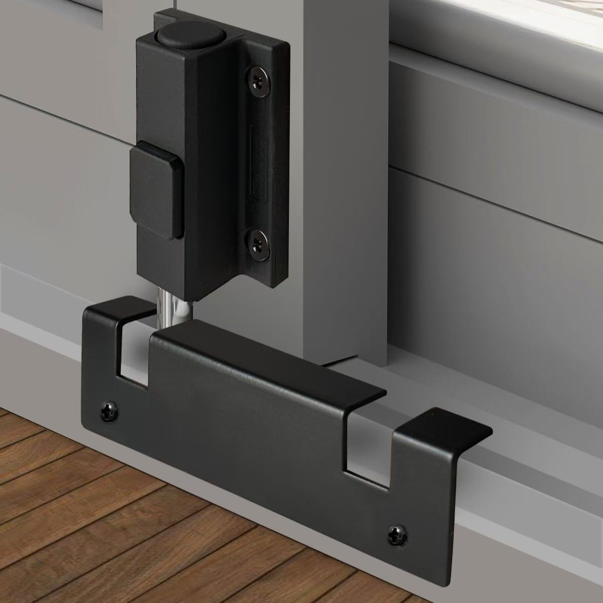 A floor-mounted lock that you kick into place, adding a simple and effective layer of security to the door.